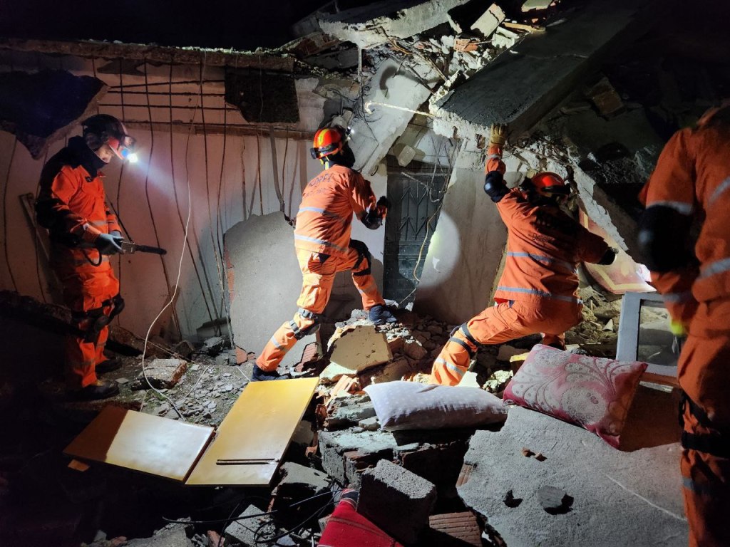 Kore Afet Yardım Ekibi (KDRT) üyeleri, Türkiye’nin Antakya ilçesinde arama kurtarma faaliyetleri yürütürken. (KDRT)